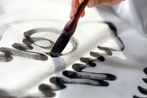 Rice paper absorbs the ink immediately, making an improvement of the brush stroke no longer possible. We work with various brushes, ink sticks, liquid ink, a support color (ink), and different types of paper, including rice paper.