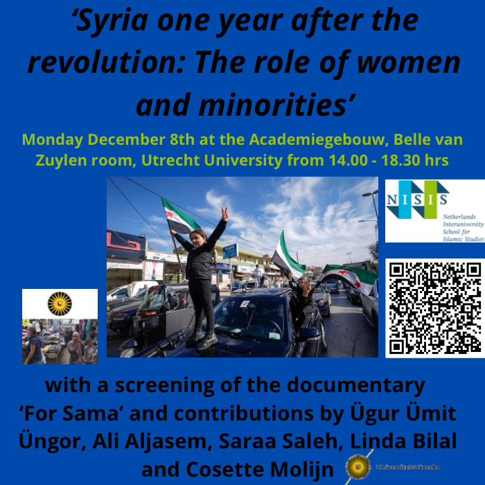 We will watch the moving documentary ‘For Sama’ (2019) by Waad Al-Kateab (Syrian journalist, filmmaker, and activist) together, followed by brief scientific lectures by Ugur Ümit Üngör and Ali Aljasem, and a panel discussion with Saraa SalehLinda Bilal and Cosette Molijn.