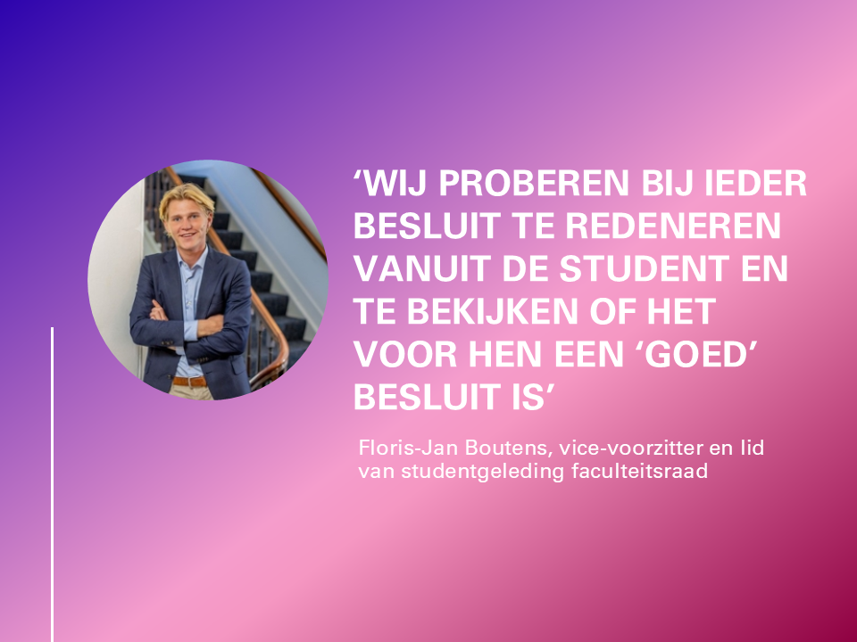‘With every decision, we try to reason from the student's perspective and to consider whether the decision is a “good” one for them’, Floris-Jan Boutens: Vice chair and member of the student representation on the Faculty Council -