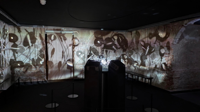 This artwork by Jos Agasi is the entrance to the exhibition and depicts ways of seeing. 'Astronomers see colliding planetary systems, botanists see moving flowers,' says Frans Snik.