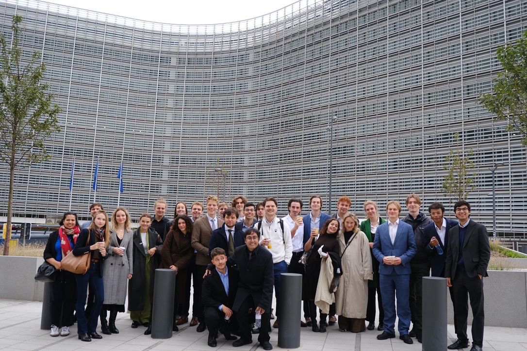 : A group of MIRD students pose in front of the iconic curved European Commission building in Brussels -