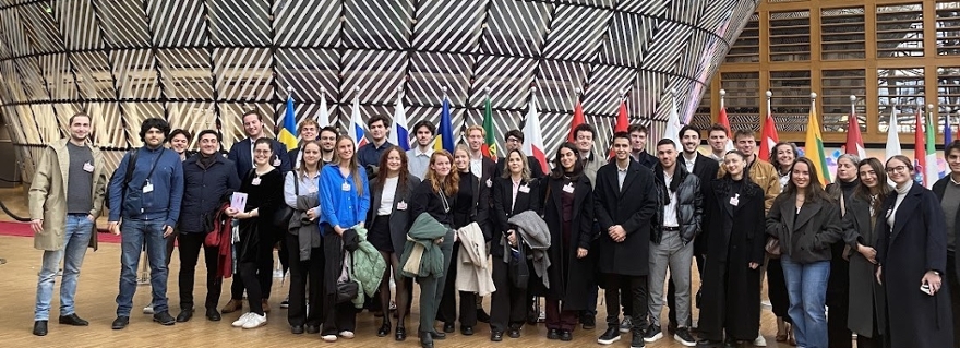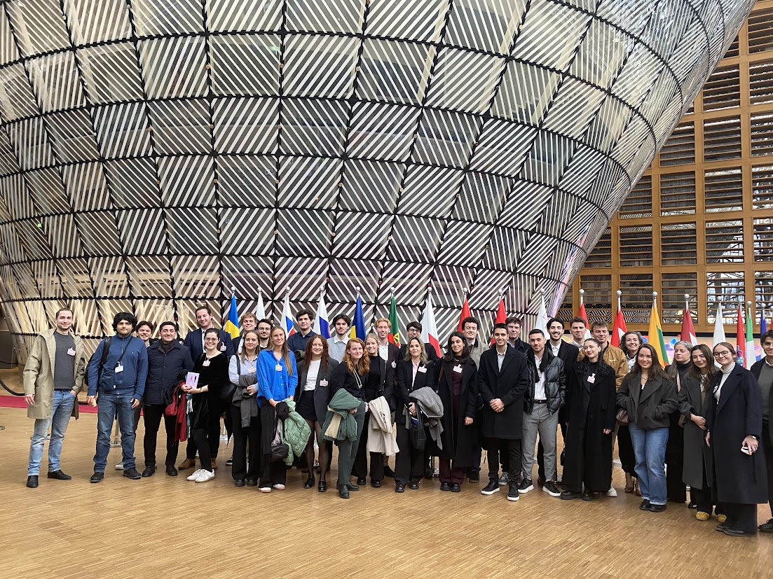 At the European Parliament, students got answers to questions both practical and political. How many languages do you need to know to work as a translator at the Parliament? Why is it so difficult to impose tariffs on Chinese cars? Did EU really ban pepernoten? (Spoiler: they did not.) And why you should thank the Brussels if you get to stay home with your newborn baby for more than two days! The day continued with a masterclass on sanctions at the Council of the EU, exploring why EU imposes sanctions on other countries, whether they work (and how we can know) and the diplomatic challenge of convincing other countries to support them.
