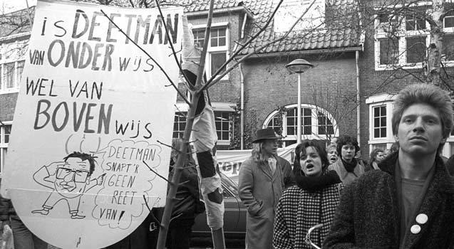 Rohde started taking photos for the Leiden Student Union. ‘Then I closely followed and photographed the student protests in the 1980s, so I experienced an occupation of the Academy Building after all. Great to see how passionate those students were.In early February 1985, Leiden students demonstrated for days against Education Minister Deetman’s plans for a new student funding system. They were strongly opposed to Deetman speaking at the university’s Dies Later, he worked for the Leidsch Dagblad newspaper and tattoo magazines, also writing stories for them.