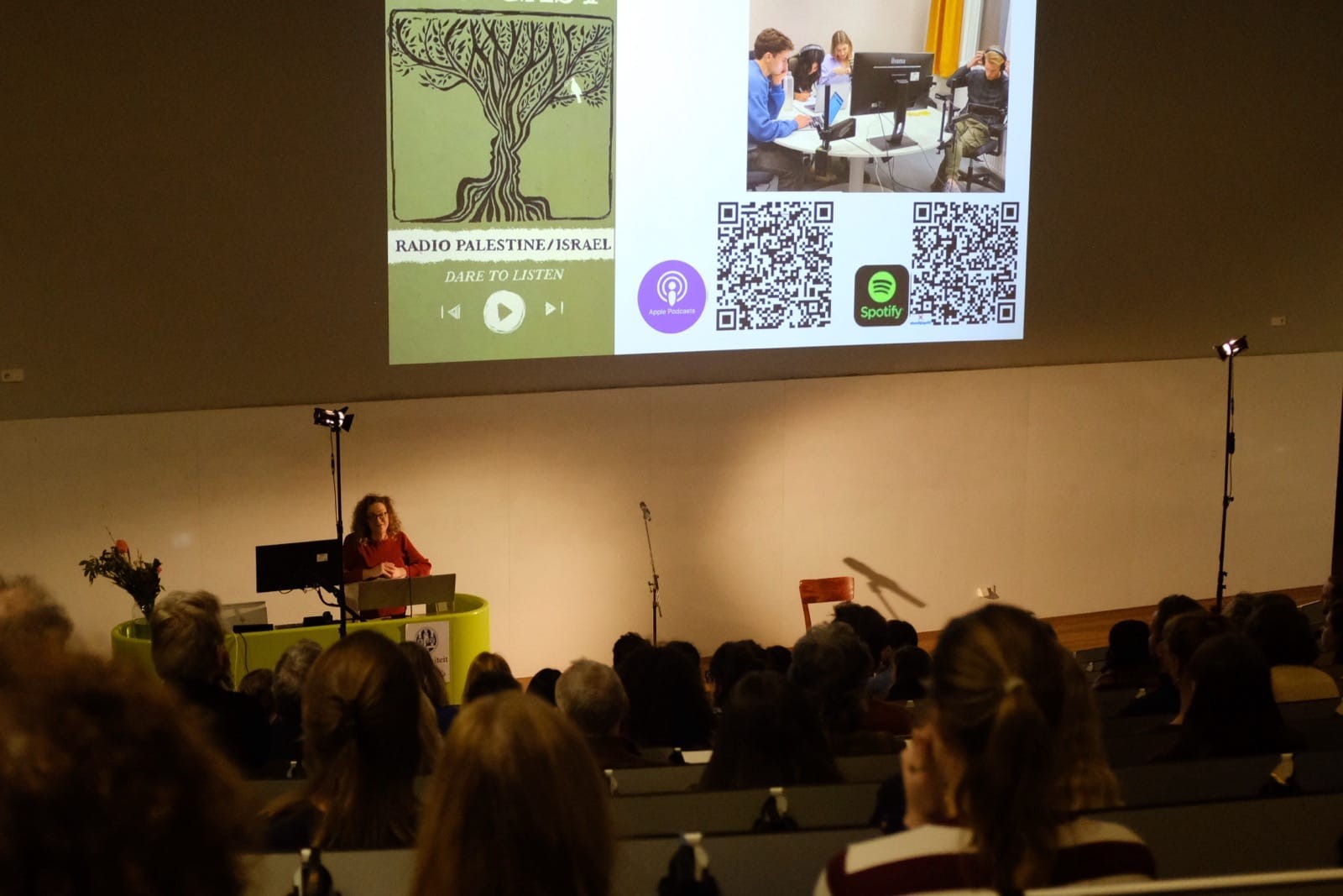 The evening concluded with an open discussion with the audience, in line with the broader aims of the Radio Palestine/Israel course. It encourages students to engage with difficult questions without defaulting to fixed positions, and to foster dialogue across difference. Participants reflected on the themes raised during the performance, raising questions and sharing perspectives in a setting that allowed for both critical engagement and mutual listening. By bringing together students, academics, and a wider university audience, the event created space for reflection, exchange, and sustained conversation on a societally relevant, emotionally charged, and highly contentious issue. The event was made possible by the generous support of the Leiden Jewish Studies Network (LJSN) and the Faculty of Humanities’ JEDI Fund, whose contributions enabled this initiative to take place and reach a broad audience.