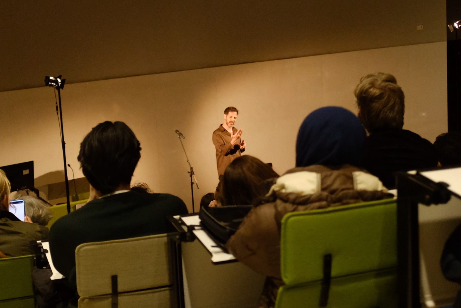 In a packed lecture hall at the Lipsius building, Palestinian-Israeli actor Yousef Sweid performed excerpts from his solo play, a personal piece exploring identity, belonging, and life between languages, cultures, and conflicting historical narratives. The performance is rooted in Sweid’s experience growing up in Haifa and later moving to Berlin. It combined humour and reflection to narrate a life lived on the faultline of the Israeli-Palestinian conflict.