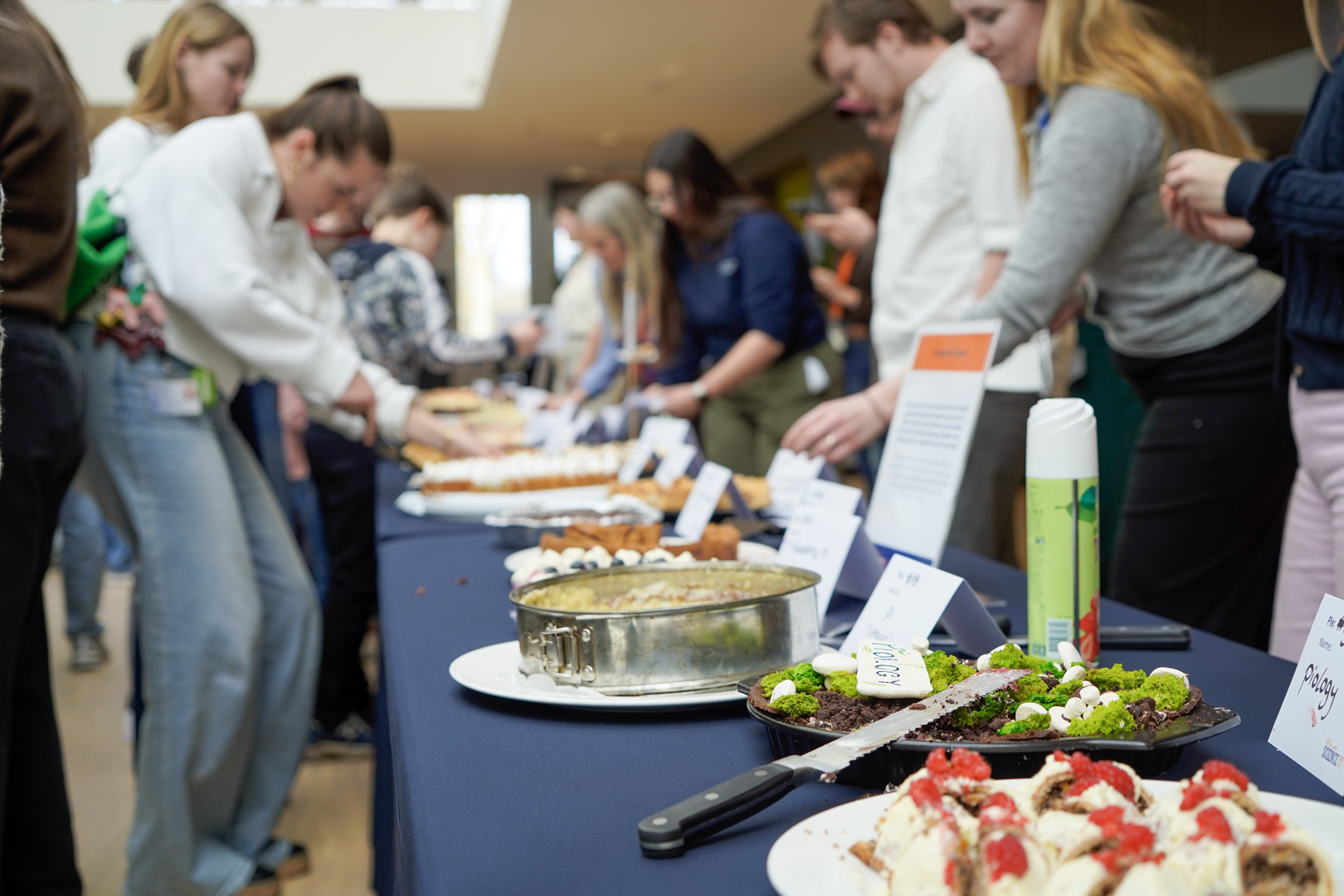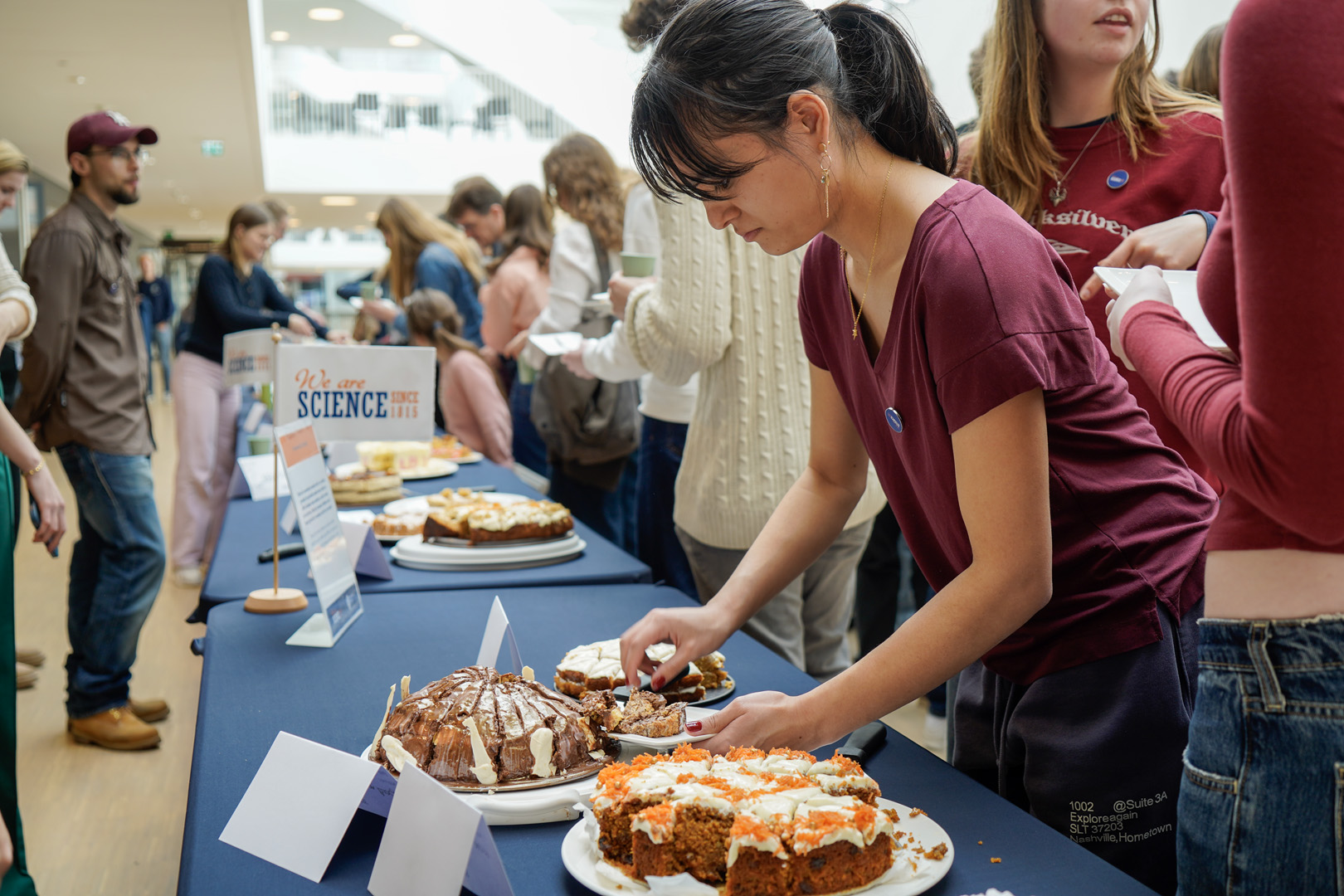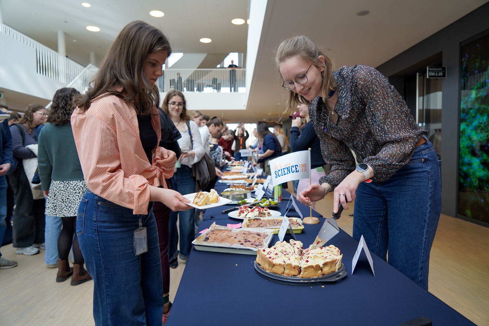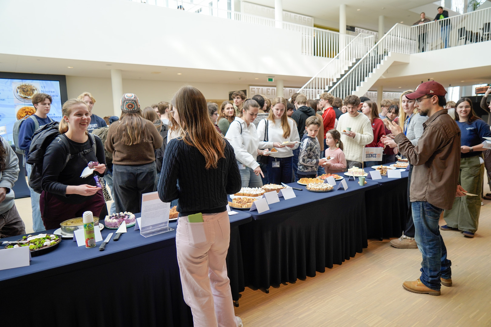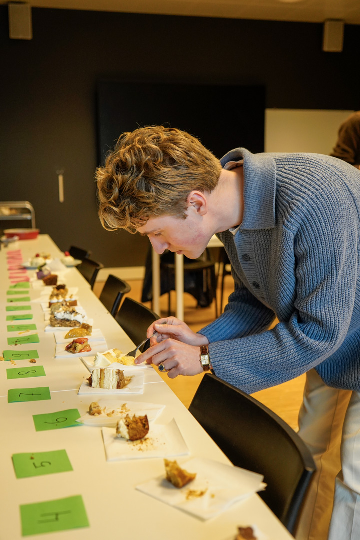Before long, the atrium was filled not only with bakers but also with tasters. Over 150 people – mainly students – queued up for a cake plate, which they could use to help themselves to a few small pieces.