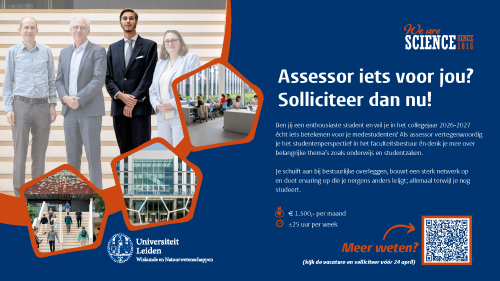 Voor vragen over de functie kun je contact opnemen met de huidige assessor Tim van Surksum via assessor@science.leidenuniv.nl. Voor vragen over de sollicitatieprocedure kun je contact opnemen met Eva van der Kruk (bestuurssecretaris) via bestuur@science.leidenuniv.nl.