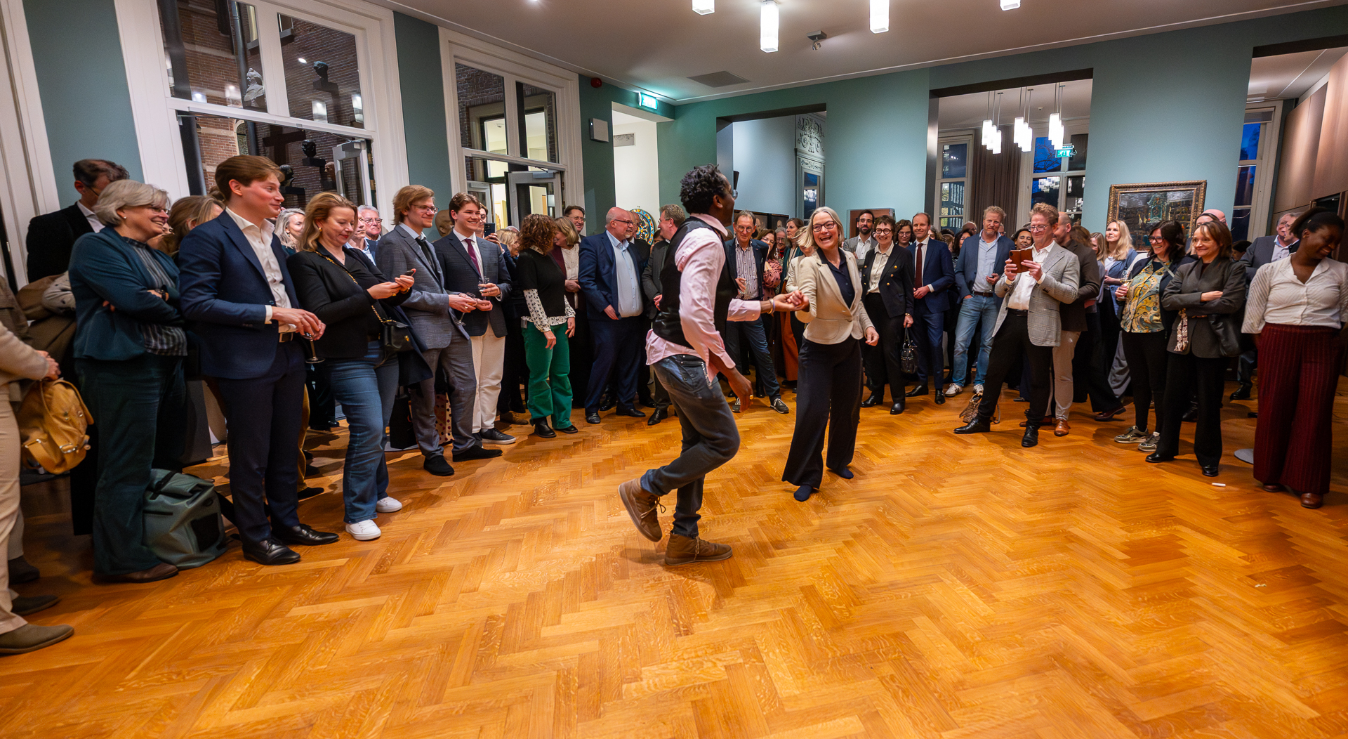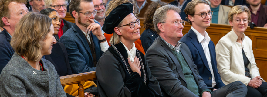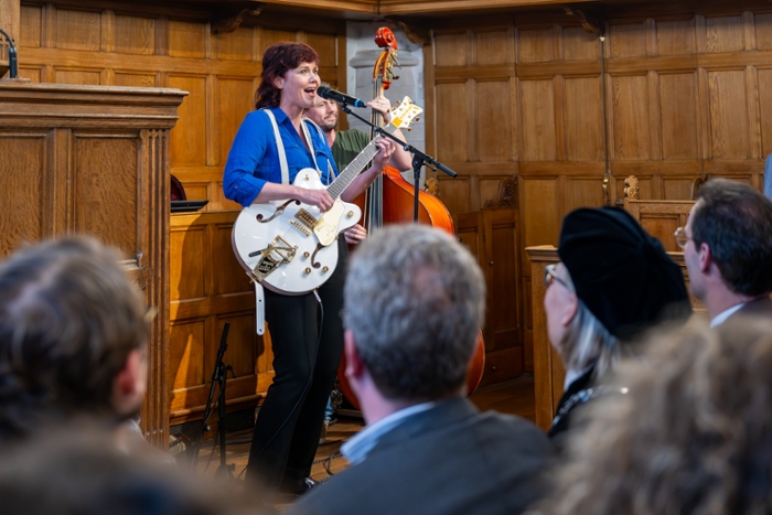 Diverse andere sprekers noemden ook Bijls rol als verbinder. Zoals natuurkundige Julia Cramer, oud-voorzitter van de Young Academy Leiden en studentassesoren Tim van Surksum en Mick de Kruijff die haar zichtbaarheid tijdens demonstraties waardeerden. FGGA-decaan Koen Caminada sprak mede namens de Raad van Decanen. Hij refereerde aan het nieuwe togaprotocol dat onder haar rectoraat tot stand kwam: ook niet-hoogleraren in de promotiecommissie mogen tegenwoordig in toga. ‘Van een universiteit van hoogleraren werd de universiteit meer van ons allemaal.’ Tussen de toespraken door was er ook een swingend intermezzo. Psycholoog Marjolein Fokkema en immunoloog Koen van der Maaden speelden het nummer Loosen Up That Model!’ over de wondere wereld van de algoritmes.