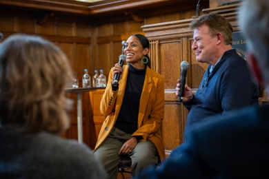 Jennifer Doekhie wordt geïnterviewd door Adriaan Rademaker.