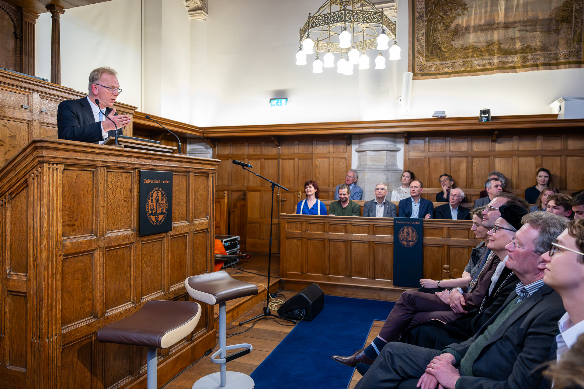 De relatie met de woelige samenleving kwam ook terug in de toespraak van universiteitshistoricus Pieter Slaman. Hij had het over het tweede speerpunt van Bijls bestuur: academische vrijheid. ‘Rustig te midden van woeste golven’, was de lijfspreuk van stichter Willem van Oranje. ‘Zo zag hij ook de universiteit. Hier mogen visies op elkaar botsen en natuurlijk is dat een recept voor gedonder.’ Slaman wees op de vele maatschappelijke conflicten die de universiteit eerder raakten, zoals de godsdiensttwisten en de eeuwige strijd tussen progressieven en behoudenen.