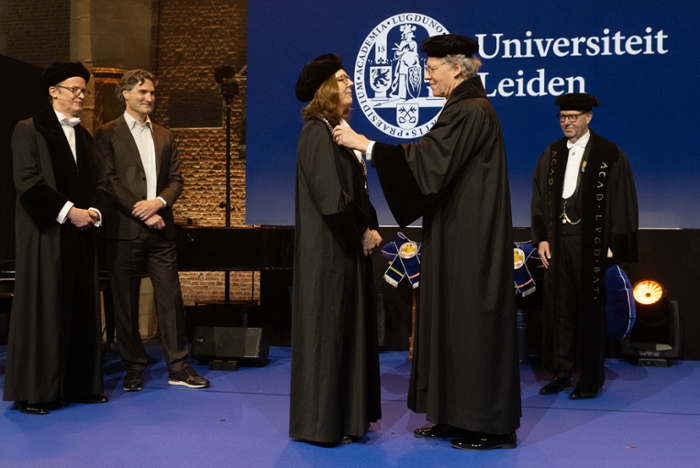 Een bijzonder moment was de overdracht van het rectoraat op hoogleraar Sarah de Rijcke. Ten overstaan van de academische gemeenschap ontving zij de rectorsketen, waarna zij haar eerste diesrede hield. Daarin stond ze stil bij de maatschappelijke en geopolitieke onrust die impact hebben op het leven van studenten en medewerkers. ‘Soms komt hun betrokkenheid tot uiting in protest; dat hoort bij een levendige democratie. Dan is het belangrijk elkaars argumenten te blijven bevragen, vanuit kennis en zorgvuldigheid.’