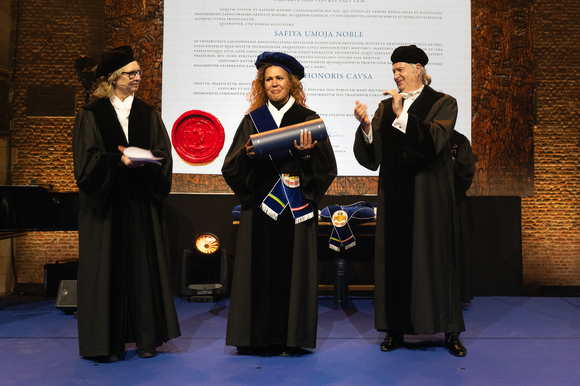Daarover zei ze tijdens de dies: ‘Het wordt tijd dat we investeren in de organisatie van gemeenschappen die nuttig zijn voor heel veel mensen, in plaats van een paar. (…) We moeten technologie, en de miljarden dollars die erin worden geïnvesteerd, in de juiste context plaatsen en in balans brengen met andere humanitaire benodigdheden zoals huisvesting, onderwijs, schoon voedsel en water, een schone lucht, en netwerken die zorg en vreugde bieden.’ Zichtbaar ontroerd sloot ze af: 'Ik ben vereerd dat ik een wetenschapper mag zijn die aan deze problemen werkt, samen met jullie.'