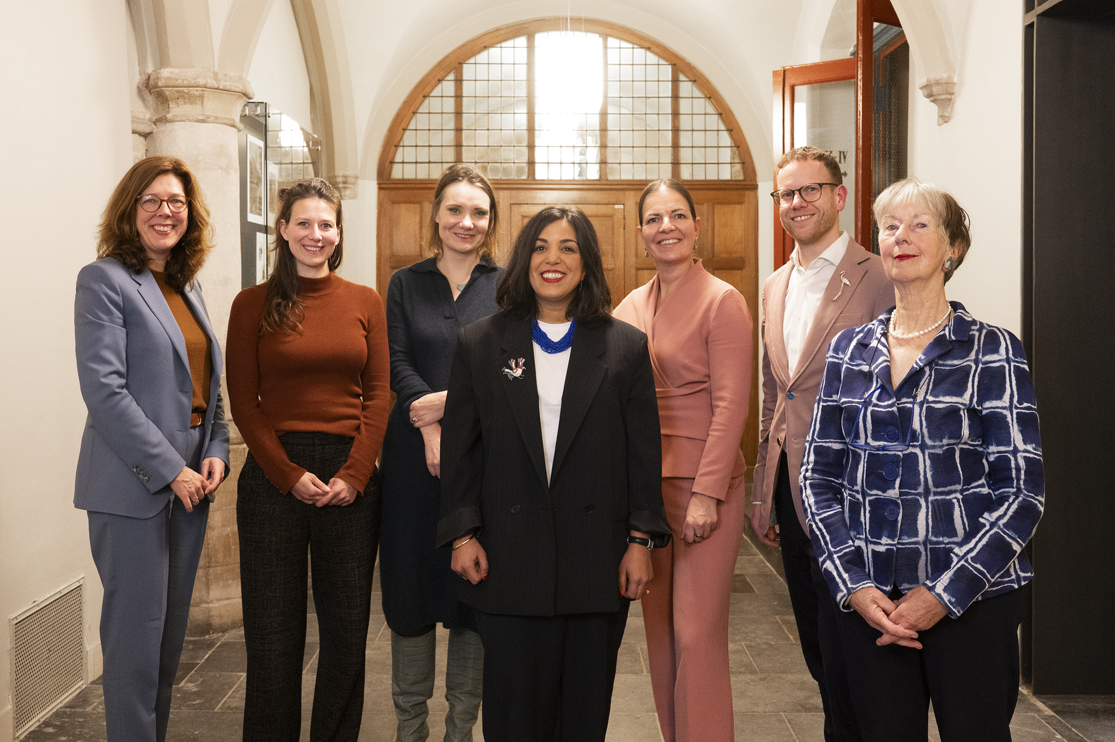 van links naar rechts: Sarah de Rijcke, Julie Hall, Nadine Akkermans, Nadia Bouras, Ingrid Leijten, Looi van Kessel, Greta Noordenbos -